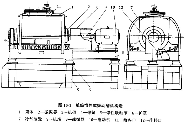 一、單筒慣性式振動(dòng)磨機(jī)的構(gòu)造與工作原理